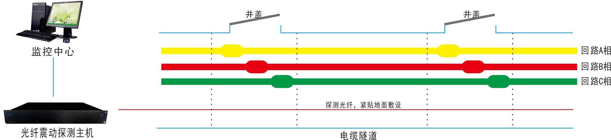 電纜隧道屬于地下隱蔽設(shè)備,常常由于市政建設(shè)需要,大型機械會在電纜隧道周邊持續(xù)、頻繁的施工,對電纜隧道結(jié)構(gòu)造成極大的影響,嚴重時還會導(dǎo)致地表坍塌等重大事故。針對第三方破壞導(dǎo)致電纜隧道結(jié)構(gòu)損壞的現(xiàn)象,可通過電纜隧道防外破監(jiān)測系統(tǒng)對地下設(shè)施周邊一定范圍內(nèi)的土壤振動信息進行連續(xù)監(jiān)測和分析,從而實現(xiàn)地下電纜隧道安全預(yù)警,有效防止第三方破壞。